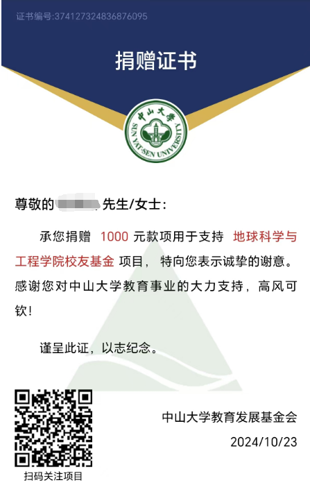 百年来,中山大学地球科学(地质学)学科的发展得到了学校及各级部门、特别是学院师生、校友和社会贤达给予的广泛关心与热情资助,在此我们表示衷心感谢。涓涓细流,汇成江海,我们承诺,将珍惜每一份捐赠,将其用于学院最需要的地方,让其成为推动学院各项事业实现高质量发展的强大力量。