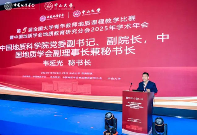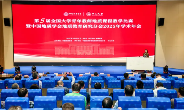 为贯彻新时代全国高等学校本科教育会议精神,落实立德树人根本任务,2025年10月25-26日,第五届全国大学青年教师地质课程教学比赛暨中国地质学会地质教育研究分会2025年学术年会在中山大学珠海校区举办。来自全国68所高校的160名青年教师,专家组及仲裁组的50余位专家以及全国50多家高校及科研院所的70余名学者,参加两年一度的地质盛会,展开精彩的地质教学比赛,探讨新时代地质类课程教育改革、人才培养、未来发展。本次比赛由中国地质学会主办,中国地质学会地质教育研究分会和我校共同承办。