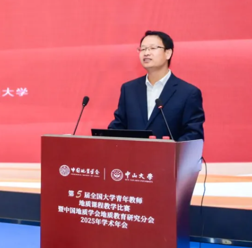 中山大学邰忠智副校长首先向远道而来的嘉宾、专家学者表示热烈欢迎,并指出在当前地球科学面临研究范式的深刻变革,地质学科迎来新兴领域的机遇挑战的背景下,本次“赛事+年会”的深度联动不仅为青年教师搭建了展示成果的舞台,也为广大学者提供了切磋研讨的宝贵契机。他希望本次大会能为推动我国地学教育高质量发展汇聚智慧、贡献力量,并祝愿所有参会嘉宾收获丰硕、不虚此行。