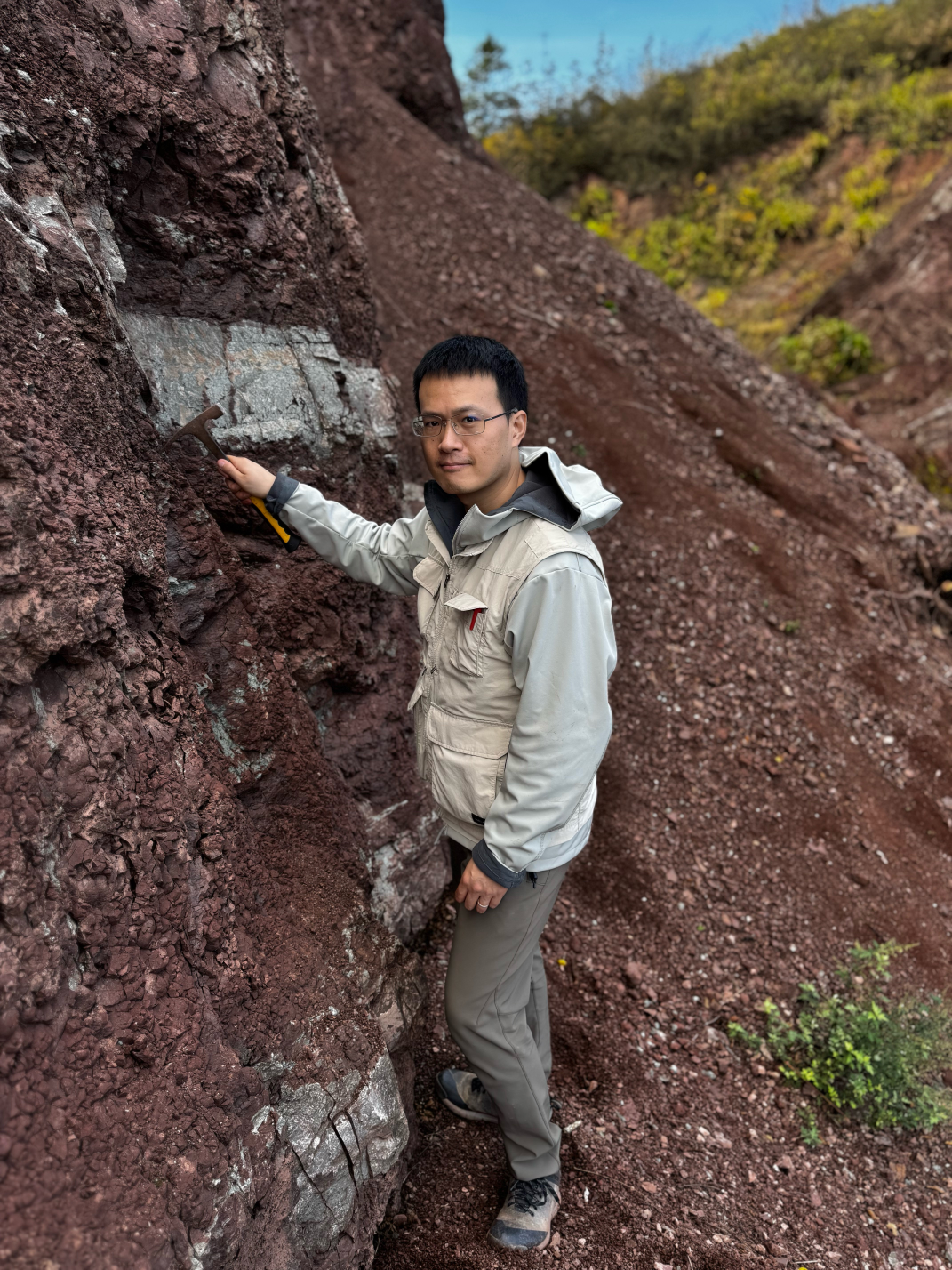 文老师的研究主要聚焦于温室气候背景下陆地地貌-气候-生物演化的联系。他钻研沉积学和地球化学领域的研究,方法涉及野外考察,实验室测试分析和简单的数据建模分析。作为地球表层气候、地形、生物活动综合作用下形成的风化成土产物,古代土壤记录了丰富的古环境与古地形信息。文老师的工作正是在野外观察并识别岩石地层中发育的古土壤,借助于稳定同位素分析与团簇同位素测温技术,恢复古土壤形成时的地表温度、降水等古环境特征,从而推断其对于全球古气候或区域地貌变化的响应。