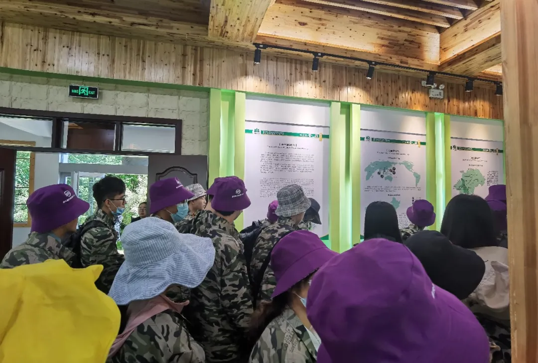 同学们在认真了解金丝猴的习性(金丝猴科普展厅)