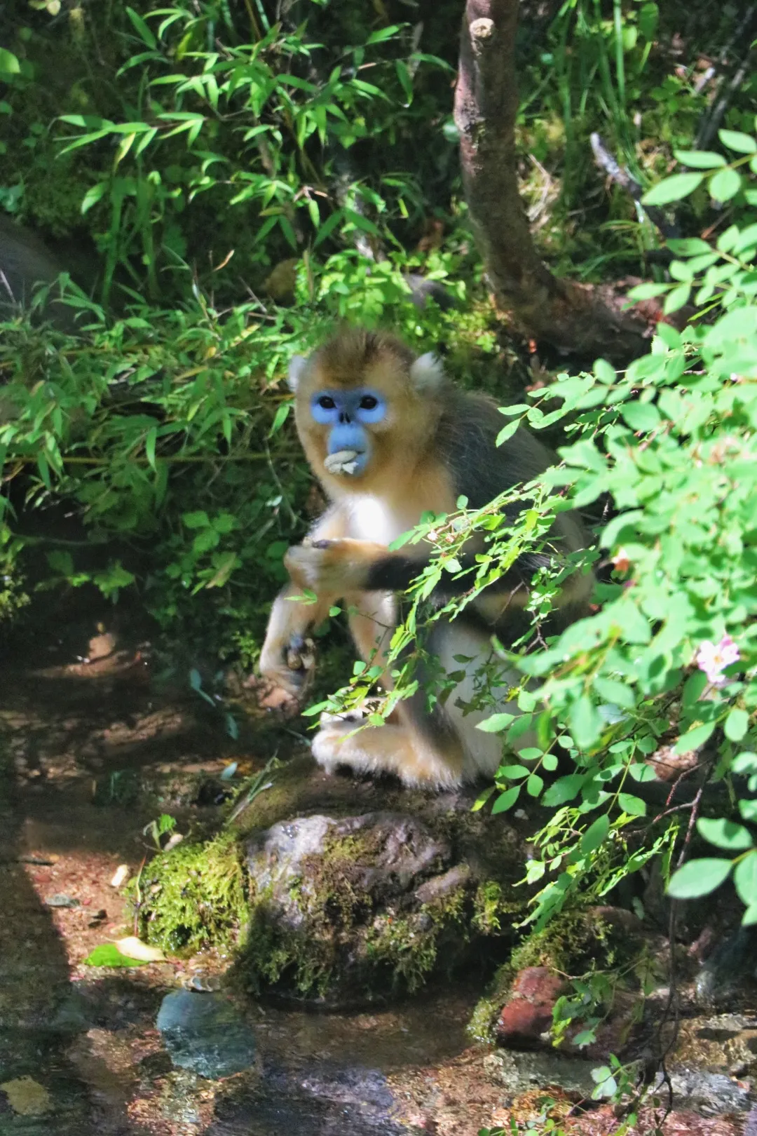 寻着一声声地鸣叫,我们终于看到了蓝脸的金丝猴。它们的皮毛在阳光下闪着金光!这些毛茸茸的小生物简直就是治愈魔法!
