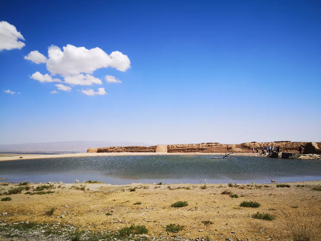 景泰县城地处干旱缺水的大西北,建造古城首先必须要解决水源问题,在古城门口我们发现有一个蓄水的大池塘,沿着池塘向上追溯可以发现池塘位置处于山前,形成了一个天然的蓄水池,山前浅地表水因为地形差异,自然汇聚到了这个池塘。该池塘另外一头连着原来永泰古城周边的护城河,这样既解决了城内居民士兵吃水问题,也起到了防护作用。这让我们对古人的智慧赞叹不已。