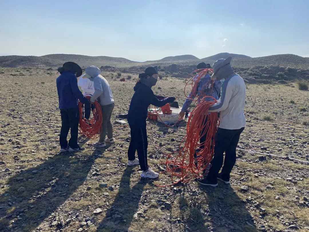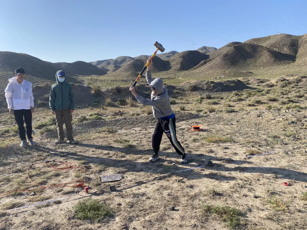 甘肃野外地球物理综合实习的第9天,在呼啸狂风和炎炎烈日的陪伴下,同学们开始了新的一天的工作。虽然天 气不尽人意,但依旧不会影响同学们学习的热情。